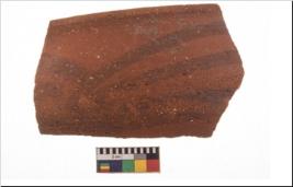 | Description / विवरण | Specimen of potsherd with black decorative geometric painting. Type Black on Red Ware . |