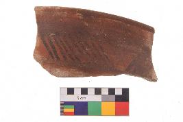 | Description / विवरण | Specimen of potsherd with decorative geometric Linear painting, Type Black on Red Ware . |