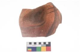 | Description / विवरण | Specimen of potsherd with black decorative geometric painting . |