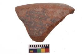| Description / विवरण | Specimen of black on red ware with decorative geometric A row latticed diamonds set in horizontal bands but having groups of oblique lines at intervals painting. |