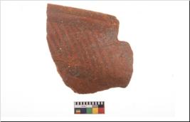 | Description / विवरण | Specimen of potsherd with black decorative geometric painting. Type Black on Red Ware . |