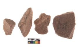 | Description / विवरण | It made up of a short flakes with sides trimmed. Marks of secondary flaking are present on the both the faces. It rained pebbly cortex on one side and irregular thin edge on the other. The dorsal is relatively flat. A patch of cortex near the section which is slanting to the dorsal .It is sub rectangular in shaped. |