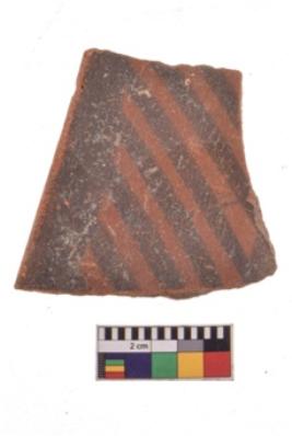 | Description / विवरण | Specimen of black on red ware with decorative geometric Outcurved lines painting. |
