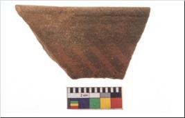 | Description / विवरण | Specimen of potsherd with black decorative geometric painting. Type Black on Red Ware . |