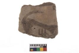 | Description / विवरण | A fragment of a potsherd. It is reddish in colour with black decorative animal painting on it. |