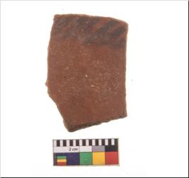 | Description / विवरण | Specimen of potsherd with black decorative geometric painting. Type Black on Red Ware . |