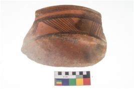 | Description / विवरण | Specimen of potsherd with black decorative geometric painting . |