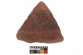 | Description / विवरण | Specimen of potsherd with decorative geometric Net Pattern painting, Type Black on Red Ware . |