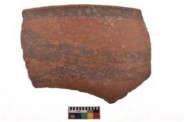 | Description / विवरण | Specimen of black on red ware with decorative geometric Outcurved lines painting. |