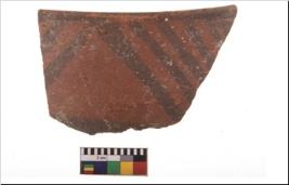 | Description / विवरण | Specimen of potsherd with black decorative geometric painting. Type Black on Red Ware . |