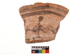 | Description / विवरण | A specimen of a potsherd. It is reddish in colour with black decorative geometric painting on it. |