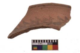 | Description / विवरण | Specimen of black on red ware with decorative geometric A row of arches over a horizontal band painting. |