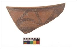 | Description / विवरण | Specimen of potsherd with black decorative geometric painting. Type Black on Red Ware . |