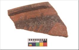 | Description / विवरण | Specimen of potsherd with black decorative geometric painting. Type Black on Red Ware . |