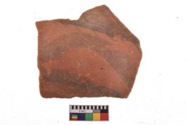 | Description / विवरण | Specimen of black on red ware with decorative geometric Outcurved lines painting. |