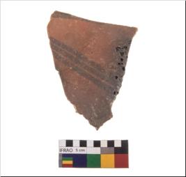 | Description / विवरण | Specimen of potsherd with black decorative geometric painting. Type Black on Red Ware . |