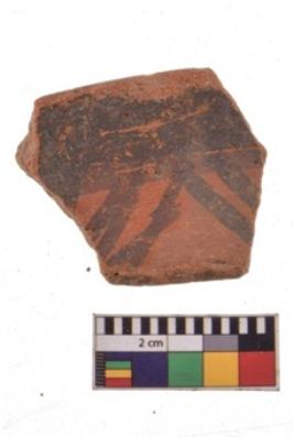 | Description / विवरण | Specimen of black on red ware with decorative geometric Groups of oblique strokes set in horizontal bands on the exterior painting. |