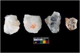 | Description / विवरण | Specimen of cores with weathered cortex and several broad fluted marks. Some of them are tapering at one end. |