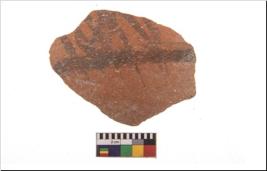 | Description / विवरण | Specimen of potsherd with black decorative geometric painting. Type Black on Red Ware . |