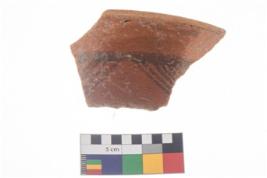 | Description / विवरण | Specimen of potsherd with black decorative geometric painting . |