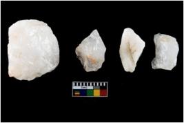 | Description / विवरण | Specimen of cores with weathered cortex and several broad fluted marks. Some of them are tapering at one end. |
