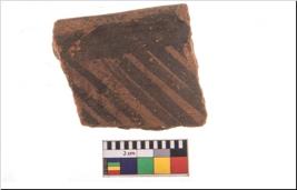 | Description / विवरण | Specimen of potsherd with black decorative geometric painting. Type Black on Red Ware . |