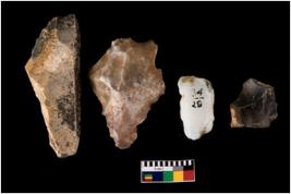 | Description / विवरण | There are n-4 intact flake cores. Out of them 3 are made up of Chert and 1 is made up of Chalcedony. There are multi directional irregular scar pattern on both dorsal and ventral face of the flake cores. |