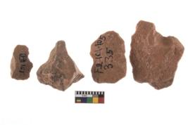 | Description / विवरण | It made up of a short flakes with sides trimmed. Marks of secondary flaking are present on the both the faces. It rained pebbly cortex on one side and irregular thin edge on the other. The dorsal is relatively flat. A patch of cortex near the section which is slanting to the dorsal .It is sub rectangular in shaped. |