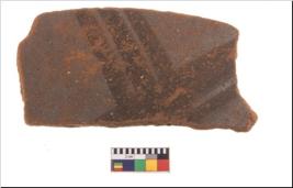 | Description / विवरण | Specimen of potsherd with black decorative geometric painting. Type Black on Red Ware . |