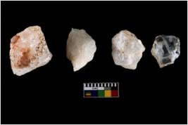 | Description / विवरण | Specimen of cores with weathered cortex and several broad fluted marks. Some of them are tapering at one end. |