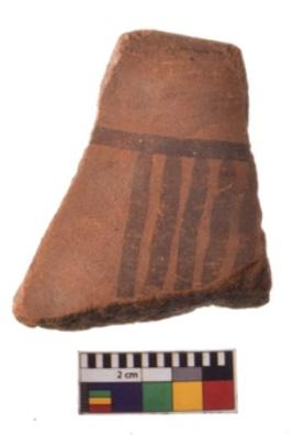 | Description / विवरण | Specimen of black on red ware with decorative geometric Vertical lines painting. |