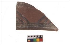 | Description / विवरण | Specimen of potsherd with black decorative geometric painting. Type Black on Red Ware . |