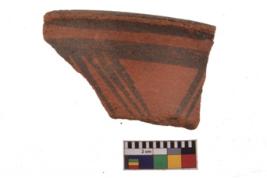 | Description / विवरण | Specimen of black on red ware with decorative geometric Groups of oblique strokes set in horizontal bands on the exterior painting. |