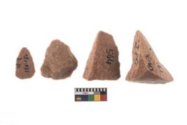 | Description / विवरण | It made up of a short flakes with sides trimmed. Marks of secondary flaking are present on the both the faces. It rained pebbly cortex on one side and irregular thin edge on the other. The dorsal is relatively flat. A patch of cortex near the section which is slanting to the dorsal .It is sub rectangular in shaped. |