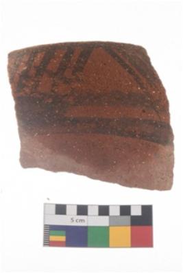 | Description / विवरण | Specimen of potsherd with black decorative geometric painting . |