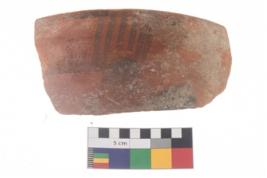 | Description / विवरण | Specimen of potsherd with black decorative geometric painting . |