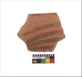 | Description / विवरण | Specimen of potsherd with black decorative geometric painting. Type Black on Red Ware . |