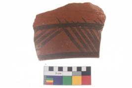 | Description / विवरण | Specimen of potsherd with black decorative geometric painting . |