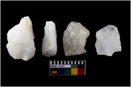 | Description / विवरण | There are n-4 of intact flake cores made up of Quartz. Some of them have bulge of percussion and some are flat flakes. |