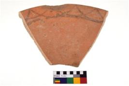 | Description / विवरण | A specimen of a potsherd. It is reddish in colour with black decorative geometric painting on it. |