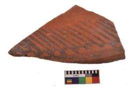 | Description / विवरण | Specimen of black on red ware with decorative geometric Outcurved lines painting. |