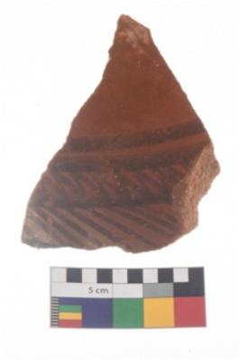 | Description / विवरण | Specimen of potsherd with black decorative geometric painting . |