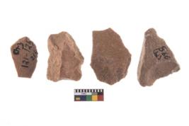 | Description / विवरण | It made up of a short flakes with sides trimmed. Marks of secondary flaking are present on the both the faces. It rained pebbly cortex on one side and irregular thin edge on the other. The dorsal is relatively flat. A patch of cortex near the section which is slanting to the dorsal .It is sub rectangular in shaped. |