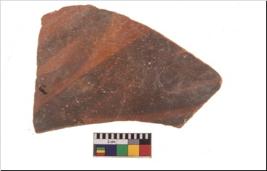 | Description / विवरण | Specimen of potsherd with black decorative geometric painting. Type Black on Red Ware . |