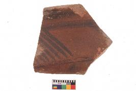 | Description / विवरण | Specimen of potsherd with decorative geometric Linear painting, Type Black on Red Ware . |
