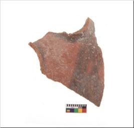 | Description / विवरण | Specimen of potsherd with black decorative geometric painting. Type Black on Red Ware . |
