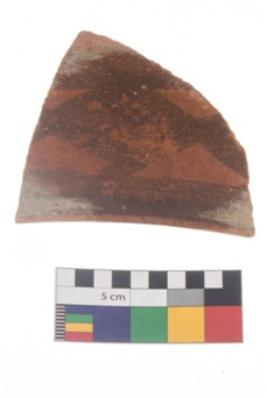 | Description / विवरण | Specimen of potsherd with black decorative geometric painting . |