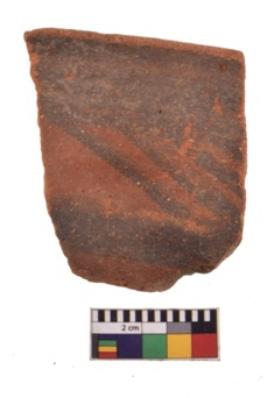 | Description / विवरण | Specimen of black on red ware with decorative geometric Outcurved lines painting. |