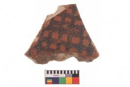 | Description / विवरण | Specimen of potsherd with decorative geometric Net Pattern painting, Type Black on Red Ware . |