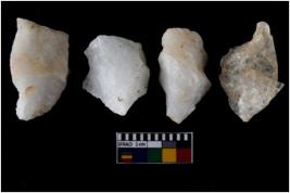 | Description / विवरण | There are n-4 of intact flake cores made up of Quartz. Some of them have bulge of percussion and some are flat flakes. |